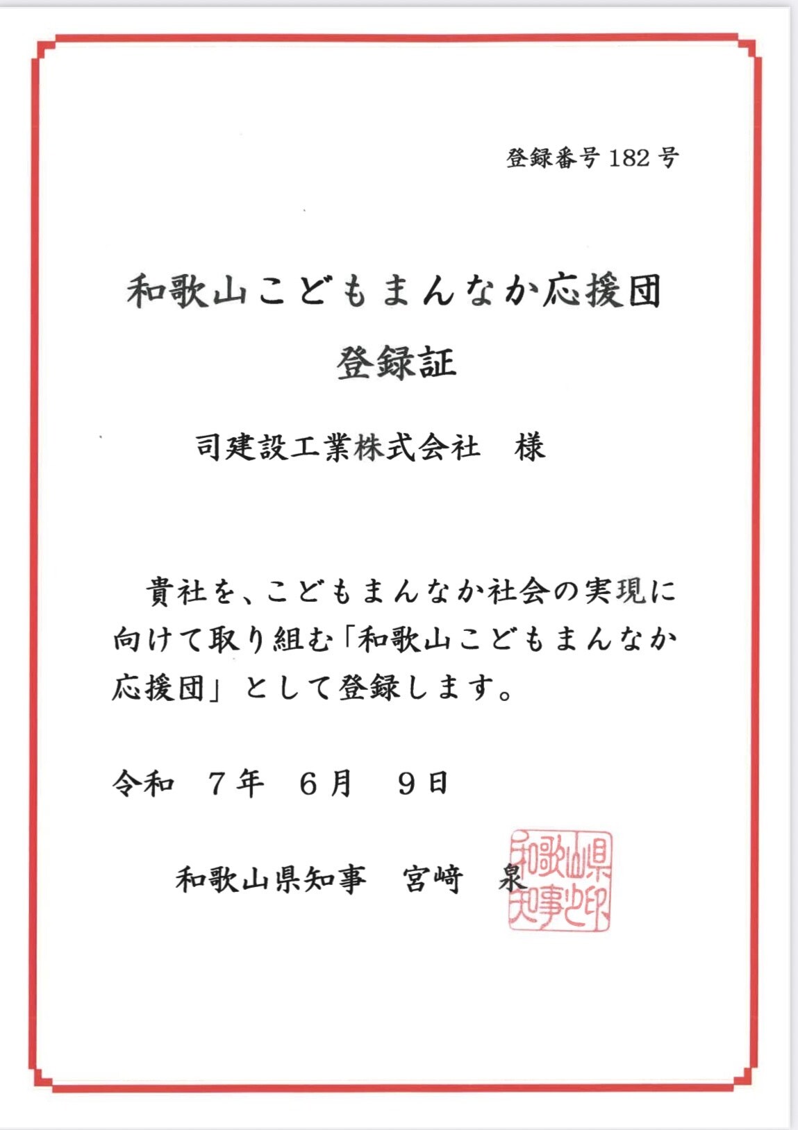 | 2025/06/11 | 和歌山こどもまんなか応援団 認定 |